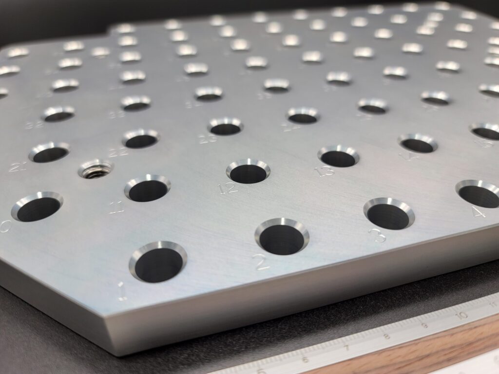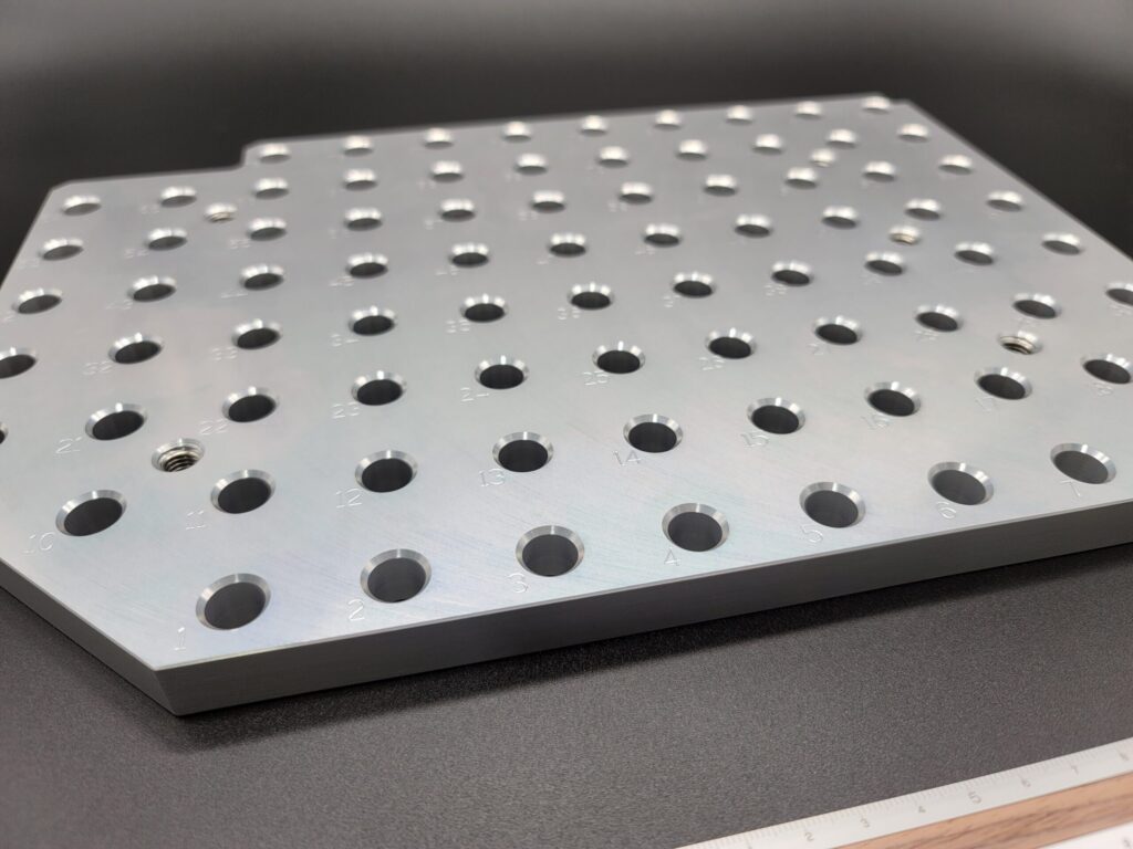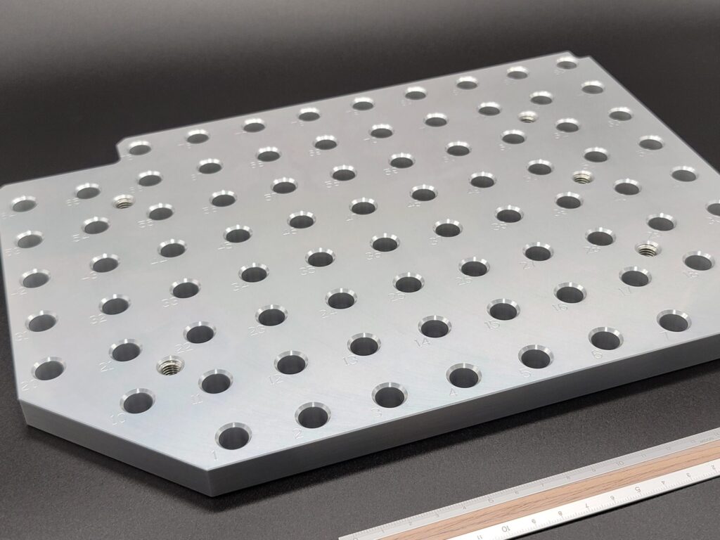 アルミのプレート加工を行いました。ナンバー刻印・ヘリサートタップと全て弊社にて対応可能です。